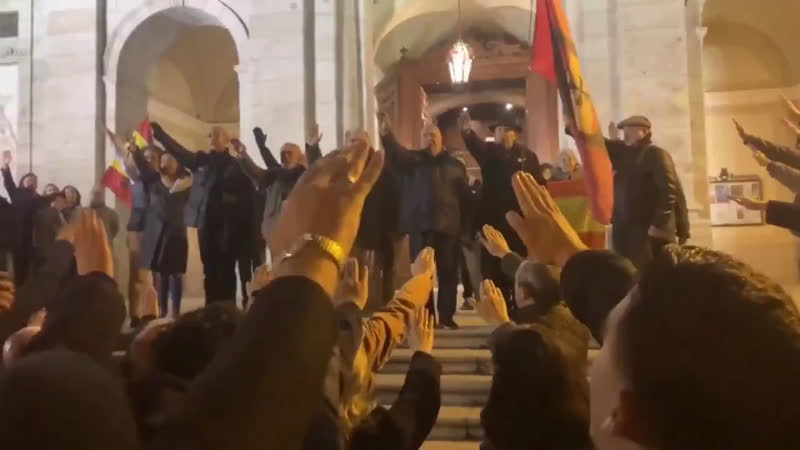 Si quieres terminar con los globalistas unite a la falange. Anoche tuvo lugar una manifestación de Falange que el Tribunal Superior de Justicia de Madrid autorizó tras prohibición del Gobierno