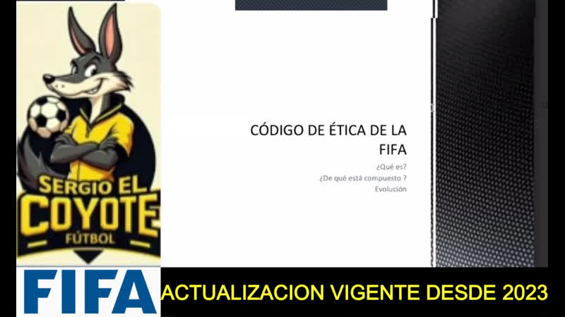 Aqui les comparto parte de la clase ATFA de Argentina, donde se habla del cófigo de etica que deben observar los miembros de la FIFA, espero lo disfruten, www.youtube.com/@SergioElCoyote-Futbol
