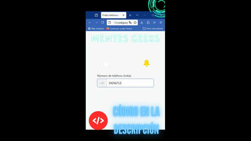 En este vídeo te muestro cómo funciona un campo de formulario para número de teléfono con prefijo +91 (India), diseñado con HTML y CSS moderno.